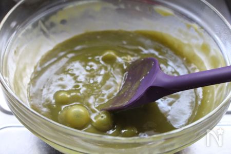 2. 大さじ1の抹茶を加え混ぜます。抹茶がダマになっても、後でちゃんと混ざりますので気にしなくて大丈夫ですよ。