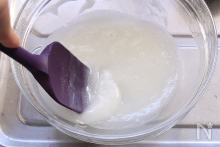Aを器に入れてダマにならないようにかき混ぜ、少し置いてふやかします。