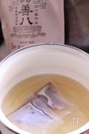 鍋に水とやきつべの出汁を入れて5分火にかけ煮出しA 醤油(あれば薄口) 大さじ1、みりん 大さじ1、塩 小さじ1/2 で味をつけます。 |
