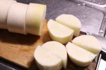 大根は厚さ3~4cmの厚切りにして、皮をむきます。円周が大きい場合は半月切りにすると良いです。 生姜は半分は皮付きのまま薄切りにし、残りは皮をむいて盛り付け用にせん切りにしておきます。 |