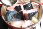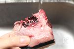 ぶりあらの下処理をします。 ぶりを水洗いして、頭や骨に残った血合いの部分をきれいに洗い流しておきます。 |