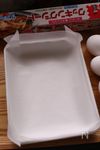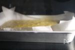 〇バットにクッキングシートをしきます。 クッキングシートの四隅を5cm程切り込みを入れるとバットの角にフィットしてくれます。 〇オーブンを190℃に予熱しておきます。 バットは野田琺瑯のキャビネサイズ(20.5×16)を今回は使用しました。 |