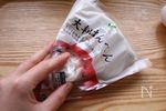 はんぺんは袋のまま揉みこみ細かくします。 少しだけ袋の口を切って空気を抜くともみ込みやすいです。 (袋が破れそうなときは厚手のビニール袋でやりましょう) |