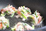 混ぜ合わせた衣は全て入れずに、具材がつながる程度の少なめに加えると、より軽い食感に仕上がります。