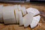 長いもは皮をむき厚さ1cmくらいのいちょう切りにします。 | |