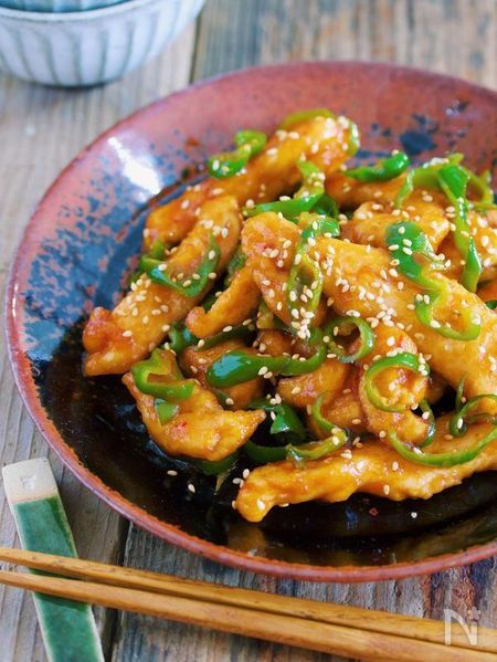 ●むね肉で超ヘルシー♪『ステイックチキンとピーマンの麻婆風』