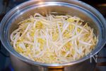 鍋にもやしとたっぷりの水を入れ、強火にかける。ひと煮たちしたら、ザルにあげ、水気を切る。 | |