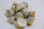 熱いうちに里芋の皮をむき(やけどに注意!)、一口サイズの乱切りにする。 | |