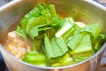 里芋に火が通ったら、小松菜を加え、再度落し蓋をして2〜3分煮たら、できあがり。 | |