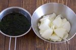 大根は皮をむき、薄いイチョウ切りにする。塩小さじ1/2(分量外)で揉み、5分ほど置く。乾燥わかめは、たっぷりの水で戻す。 | |