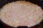 フライパンにごま油を中火で熱し、1を平らに広げて入れる。 | |