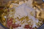 ボウルにごま油以外の材料(豚ひき肉・もやし・ピザ用チーズ・A 薄力粉 大さじ4、片栗粉 大さじ2、鶏ガラスープの素 小さじ1〜1.5、塩・こしょう 少々 )を全て入れ、粉っぽさがなくなるまで、手でよく混ぜ合わせる。 |
