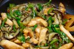 鶏肉は細切りにし、ポリ袋に入れてA しょうゆ、酒 各大さじ1/2 を揉み込み10分ほどおく。なすは縦半分に切ってから斜め薄切りにし、ピーマンは細切りにする。 |