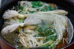 鍋にたっぷりのお湯を沸騰させ(必ず底にお皿を敷いてください)、2を入れる。弱めの中火にし、5分茹でる。(2袋同時に入れています) | |