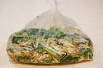 【ポイント】 ⚫︎もやしのひげ根は、気になる方は取り除いてください。 ⚫︎小松菜は、キッチンバサミで切って直接ポリ袋に入れてください。 |