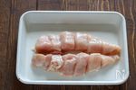 鶏肉は皮を取り、フォークで数カ所穴をあける。縦半分に切ってから1cm幅のそぎ切りにし、ポリ袋に入れてA 酒、マヨネーズ 各大さじ1、砂糖 小さじ1、塩 小さじ1/2 を揉み込む。そのまま10〜15分ほどおく。 |