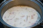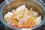 かぶは一口サイズの乱切りに(皮はお好みで)、玉ねぎはみじん切りに、ベーコンは短冊切りにする。 | |