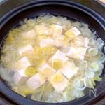 土鍋の中のスープが沸騰直前まで温まったら白菜を入れる。 次は豆腐を食べやすい大きさに切り、白菜の上に置く。 長ねぎを小口切りにし、上に被せるように散らしたら蓋をして煮る。 ※時間があれば弱火でじっくり煮込み、急ぎの場合は中火でぐつぐつさせてok |