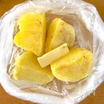 皮をむいたじゃがいもを熱いうちにポリ袋に入れ、表面にまぶすように塩コショウを振り、バターを加えてじゃがいもを満遍なく潰す。 ※お好みで塩のみや、ブラックペッパー追加okです。 ※味見してみて、少し塩気が足りないくらいが丁度いいです。 ※ここでポリ袋を使うと洗い物も減り、じゃがいもに硬い部分があればこのまま追加で電子レンジにかけられるので楽になります。ポリ袋がなければ、ボウルに入れマッシャーやフォークで潰してください。 |