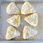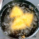 形が整ったら、バッター液、パン粉の順番で衣をつける。 | |