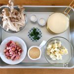 《材料の準備》 しめじ…石づきを切り落とし、手でほぐす。 ベーコン…食べやすいサイズに切る。 ゴルゴンゾーラ…小さくほぐしておく。(柔らか過ぎればそのままでもいいです。) 豆乳…牛乳でも◎ コーヒーフレッシュ…生クリームでも◎ 乾燥パセリ…フレッシュな刻みパセリでも◎ |