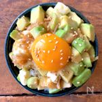 ごはんの上にのせ、真ん中に卵黄を落として白ごまを散らす。 | |