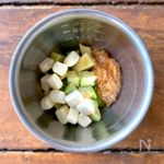 アボカド、なめ茸、クリームチーズ、白だし、ごま油をさっと和える。 | |