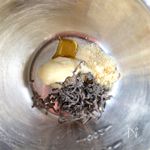 A マヨネーズ 大さじ1、塩昆布 ひとつまみ、粉チーズ 小さじ1、ハチミツ 小さじ1/3、塩 ひとつまみ をよく混ぜ、ベーコン、さいの目切りにしたアボカドと和える。器に盛りつけ、白ごまを散らす。 |