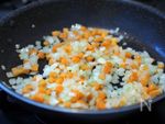 オリーブオイルを熱し、タマネギ・ニンジンをしんなりするまで炒めます。 | |