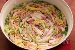A 鰹のだし汁 600cc、しょうゆ 大さじ1、塩 小さじ1/2 を混ぜて注ぎ、レモンを並べます。中火にかけ、沸騰したら火を弱めて15分ほど煮ます。 白菜が柔らかくなったら出来上がり。 |