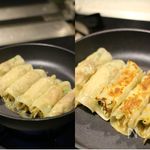 餃子の皮にBをのせたら皮からはみ出さないように巻く。 *全ての材料が均等になるように中身に気を付つける! |