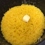 <ターメリックライス> *米 1合 *水 炊飯器1合の目盛りまで *ターメリック 小さじ1/2 *バター 大さじ1/2くらい ターメリックライスを炊く。 お米1合はいつも通りにといで水を加えて 炊くときにターメリック(小さじ1/2)を加える。 炊き上がったらバター(大さじ1/2)を加えて蓋をして溶けたら全体を混ぜる。 (冷凍ご飯を使う場合はレンジで温めて熱いうちにバター、ターメリックを加えてよく混ぜる) |