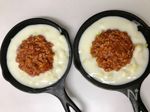 ミートソースのまわりにホワイトソースをかける。 | |