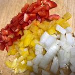冷蔵庫に残っていたパプリカを使いましたが人参やミックスベジタブルを使ってもOK(冷蔵庫にある物で)