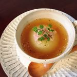 お鍋に少しだけ油を入れてベーコンを炒めたら水、コンソメと玉ねぎを入れて煮る。 | |