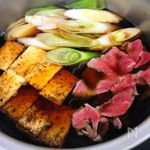 焼き豆腐は食べやすい大きさに、長ネギは斜めに切る。しらたきは湯通しし食べやすい長さに切る。 | |