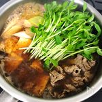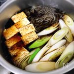 煮汁が煮たってきたら 焼豆腐、しらたき、ネギを入れて中火で煮る。 |