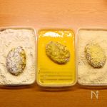 好きな形に形成し、小麦粉→卵→パン粉の順で衣をつける。 | |