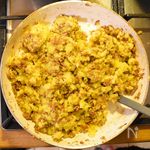 フライパンにサラダ油(分量外)をしき、中火で玉ねぎを炒め、玉ねぎが透明になったら、牛挽き肉を加える。塩胡椒で味付けし、肉に完全に火が通ったら、火を止めマッシュしたじゃがいもを加え、均等にまぜあわせる。 | |