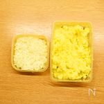 ・じゃがいもを一口大の大きさにカットし、電子レンジ600Wで5分温め、フォークかマッシャーでマッシュする。 ・玉ねぎをみじん切りにする。 |