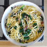 鍋にたっぷりのお湯を沸かし、塩(分量外)をいれ、パスタを茹でる。 ※茹でている間に以下の工程を終了させる。 |