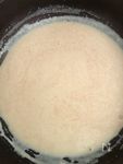 チンしている間に… フライパンにバターを溶かし、小麦粉を加えよく混ぜる。 |