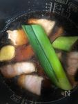 炊飯ジャーに焼き色をつけた豚バラ、生姜、(あれば)ネギの青い部分、A 水 400ml、酒 100ml、醤油 大さじ5、砂糖 大さじ3 を加える。(豚バラからでた脂もすべて加えて下さい) |