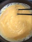 ・火にかけたら手早くひたすら混ぜて下さい。フライパンの周りから固まってくるので、外から内にかき混ぜるイメージで♪