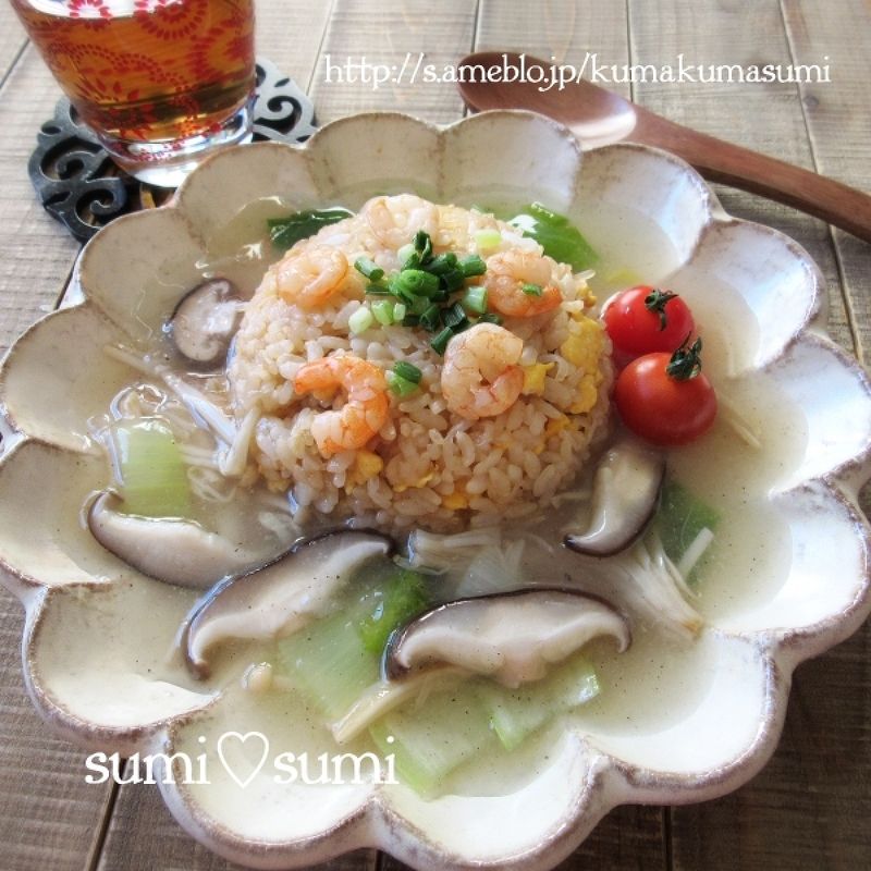 「白滝チャーハン!生姜とキノコの中華あんかけ」
