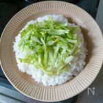 レタスを細く切り、ご飯に乗せる。その上にミートソース、トマト、スライスチーズ(細く切る)をのせる。 | |