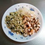 ナス、玉ねぎ、しいたけを微塵切りにする。 | |