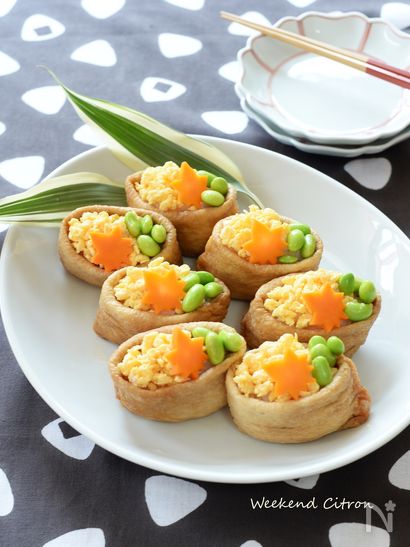 すし飯を包み込まず、秋らしいトッピングで華やかに。おもてなしやお弁当にもピッタリです。
