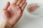 豚肉:15gは・・・ 薄切り肉を3等分にしたものを2枚程度。 脂肪の少ないところを選びます。 |