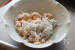 れんこんは皮を剥きすりおろし、軽く水気を切る。 しらすと片栗粉を加えて混ぜる。 |